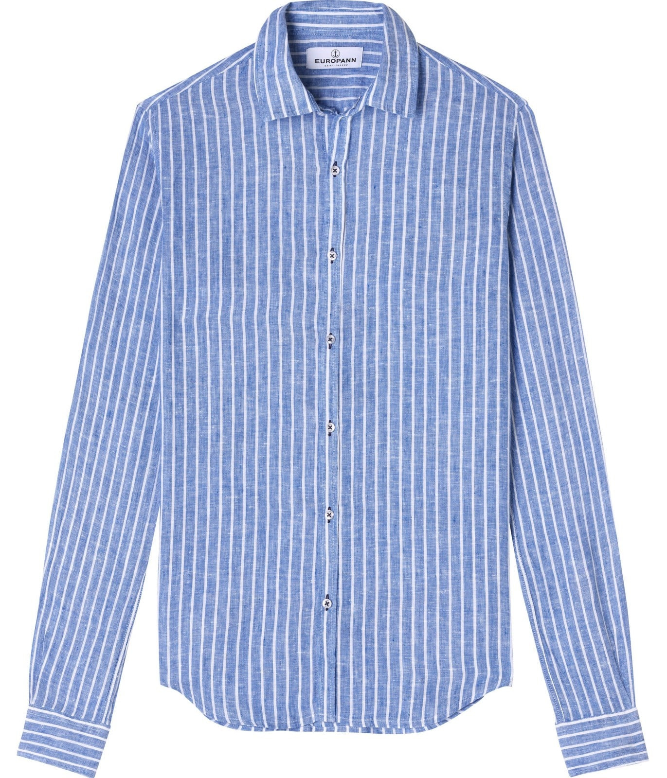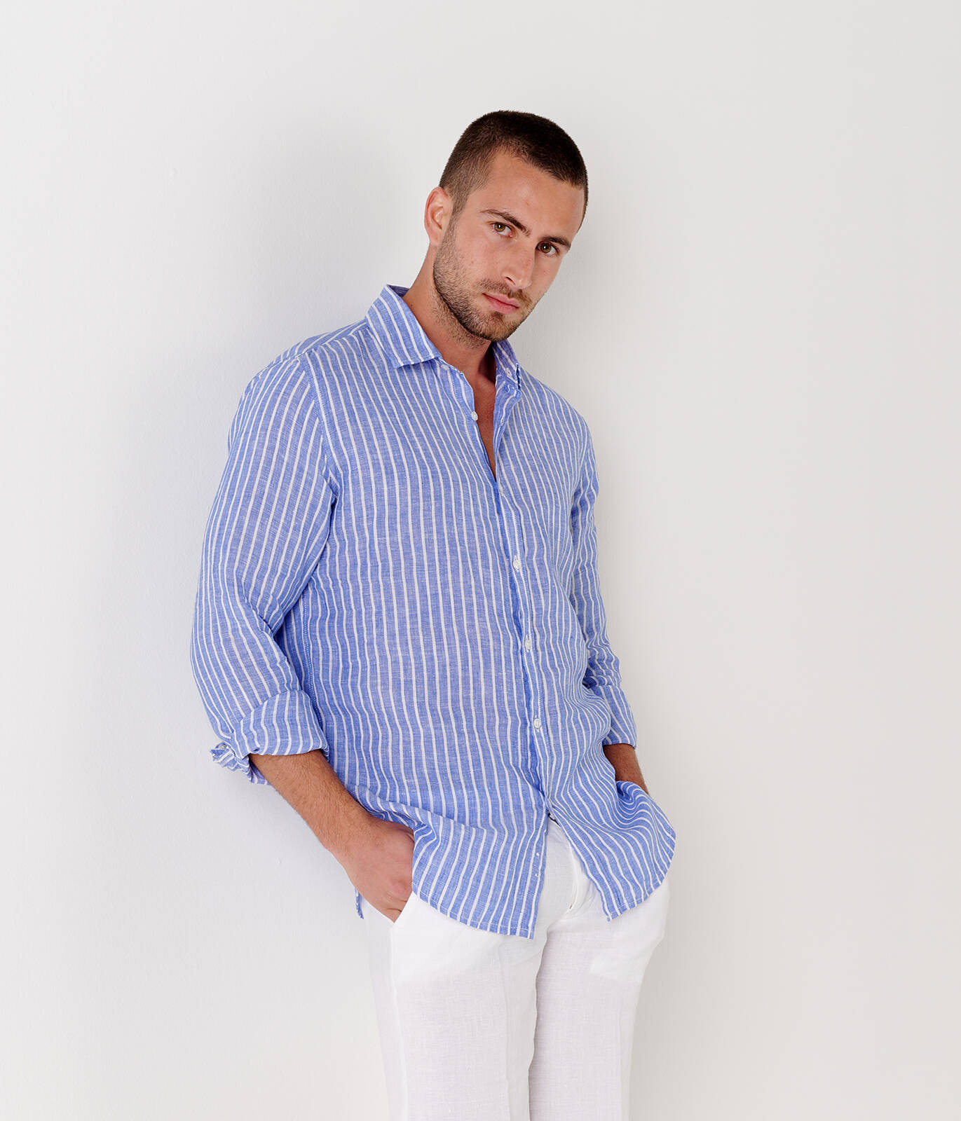 Camisa masculina de corte clássico em linho com listras finas