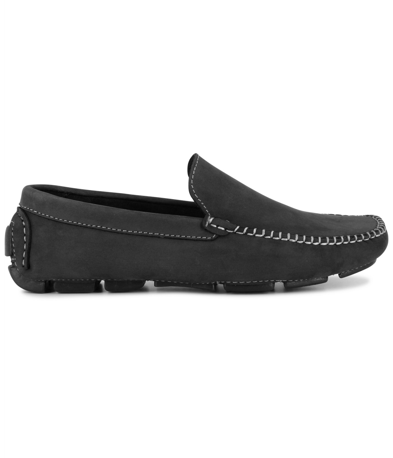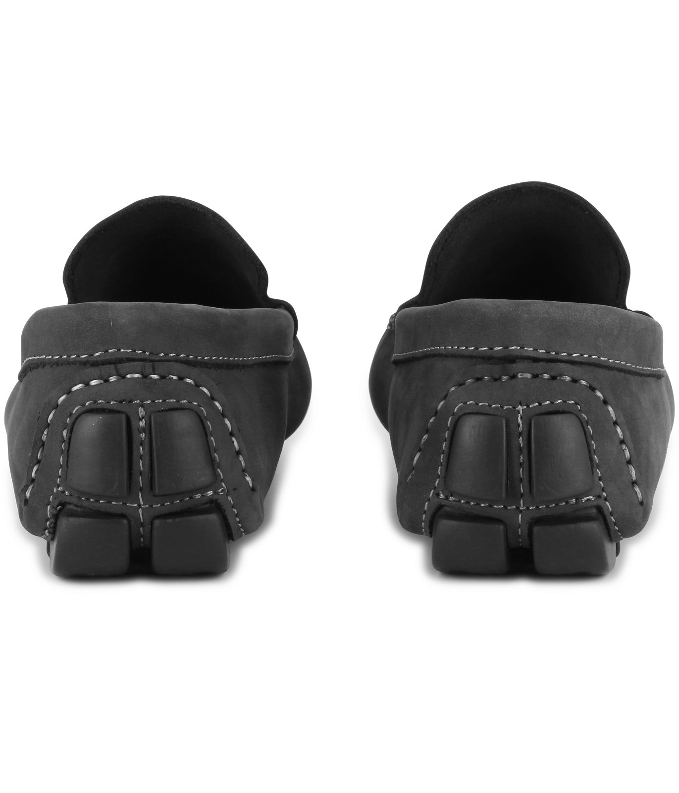 Mocassins masculinos de nobuck preto com costura visível e sola de borracha. Os mocassins Monza podem ser usados com nossas camisas e calças de linho, para um estilo chique, sóbrio e moderno.
