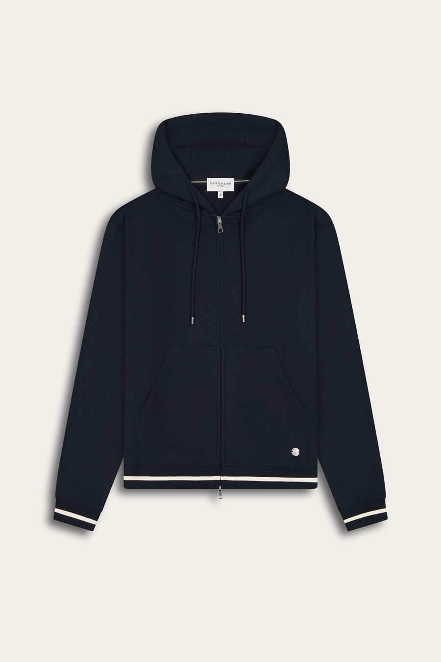 Striped ribbing at the cuffs and hem Logo