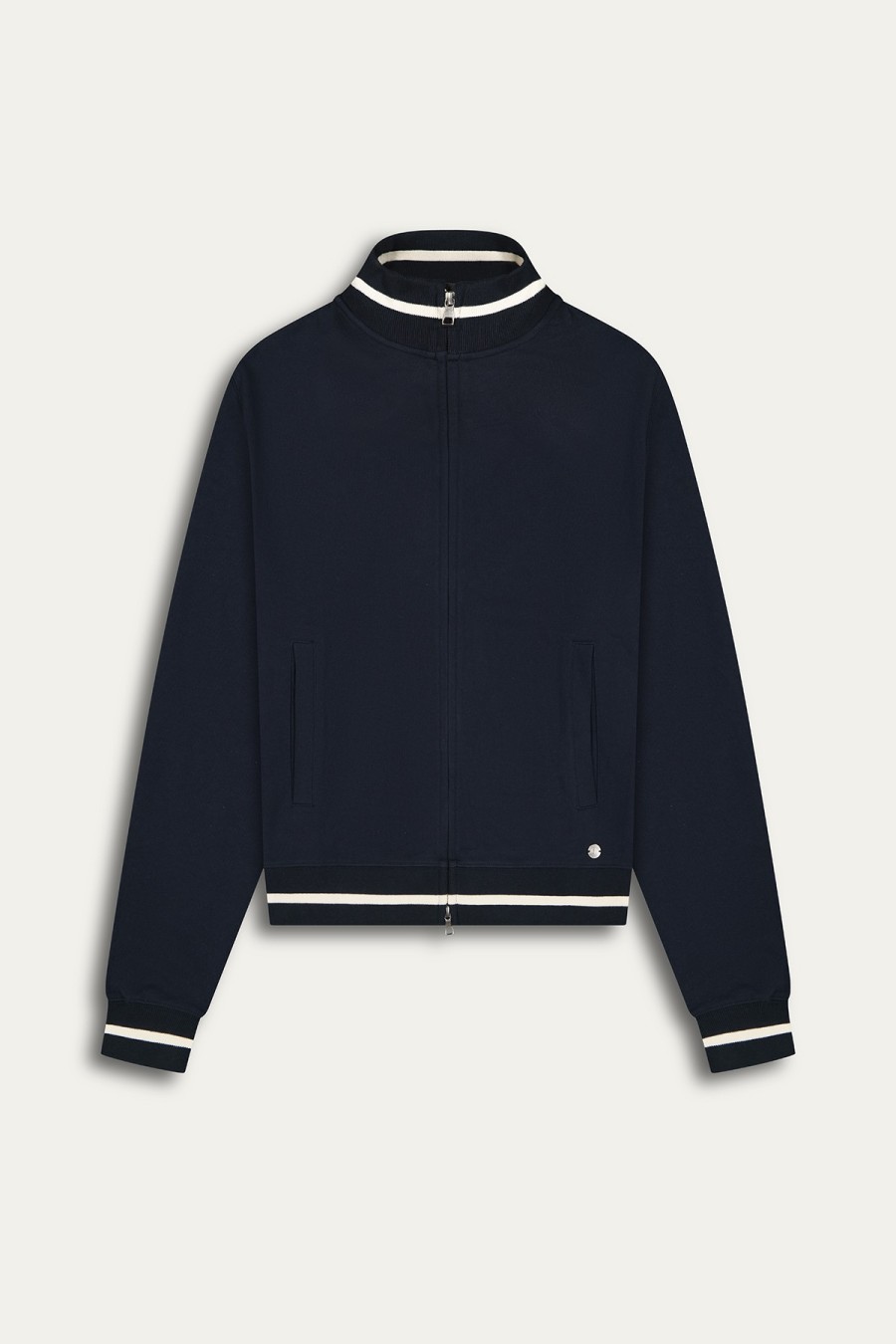 Regular-fit long-sleeve 100% cotton fleecejacket Front zipclosure Stand-up collar with striped ribbingSide pocketsRibbed cuffs and hem Engraved "Europann" logo patch